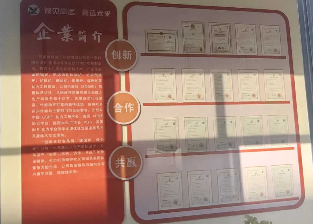 От котлов, работающих на отработанном тепле, до котлов с циркулирующим кипящим слоем, от более чем дюжины основных патентов до сертификации системы качества ISO 9001 — мы вплели принципы «инновации, сотрудничества и взаимного успеха» в каждый сварной шов. Стены нашего выставочного зала украшены сертификатами, свидетельствующими о нашем тесном сотрудничестве с такими академическими организациями, как CSPE в Китае и ASME в США, и воплощающими наше убеждение, что «оборудование должно лучше понимать котлы».